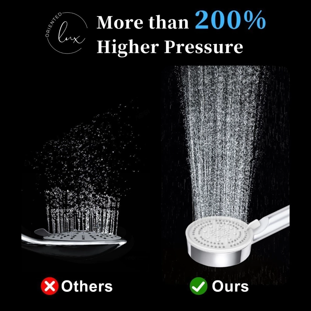 2. Potente presión de agua: El cabezal de ducha proporciona un flujo de agua a alta presión y una mejor experiencia de ducha, incluso en áreas con baja presión de agua, lo que es perfecto para edificios de gran altura.